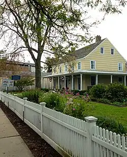 Babylon had already been settled, as Huntington South, prior to hostilities with the British in the Revolutionary War. The First Presbyterian Church of Islip and Huntington South, as it was then known, was established in 1730.[4] Though the church would later be split into two separate Huntington South and Islip churches in 1857 (the former to be renamed the First Presbyterian Church of Babylon after 1872). However, long before this split, the First Presbyterian Church held services in the original wooden church until 1778 when British soldiers tore down the structure. The wood from the first church was taken west to Hempstead to construct a barracks for British troops. This event was more recent history when, on the eve of the War of 1812, Joshua Hartt gave an impassioned sermon encouraging the young men to defend the United States and prepare for a "righteous war."[5]