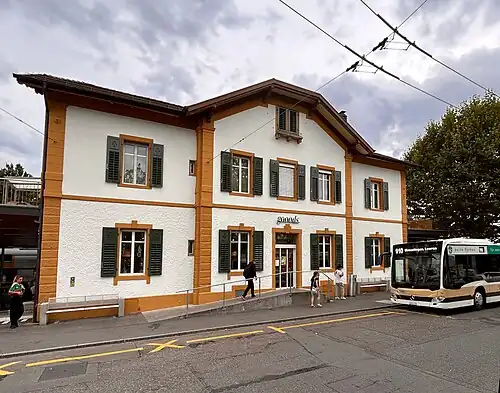 Zürich Tiefenbrunnen railway station (German: Bahnhof Zürich Tiefenbrunnen) is a railway station in the Swiss city of Zürich. It is located on the Lake Zürich right bank railway line, and is situated on the shore of Lake Zürich, in the Seefeld quarter of the city,[2] on the border between fare zones 110 and 140 of ZVV.[3]