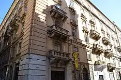 In the mid-1930s the site was purchased by the architect Gustavo R. Vincenti.[35][38] He raised a Modernism (Art Nouveau[5][39] or simply an Art Deco[40]) block, known as Vincenti Buildings after its architect[35] in 1938.[41] Vincenti Buildings were damaged during WWII but were faithfully repaired to the original design.[35][42][43] Some of the residences have been converted into offices.[5]
