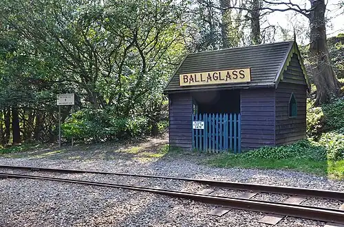 Ballaglass Glen Halt (Manx: Stadd Ghlion Valley Glass) is an intermediate stopping place on the northerly section of the Manx Electric Railway on the Isle of Man.