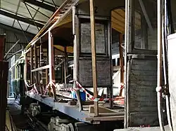 • Number 1: built 1887, one of 18 horse trams built by Duncan & Fraser of Adelaide for the Ballarat Tramway Company.[7] This tram has been almost totally rebuilt after being recovered in 1985. It was put back into service in 1992 and is used several times each year using horses.
