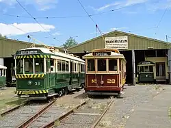 The Ballarat Tramway Museum is an operating tramway museum, located in Ballarat, Victoria, Australia. The museum is run by volunteers and has a fleet of trams which operate on part of the original horse tramway around Lake Wendouree and the Botanical Gardens. It has a large research collection, archive of information and more than 3,500 items about the Ballarat tramways.[1] The trams in Ballarat operated on a large network through the city from 1887 until 1971.[2]