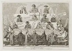 Bamber Gascoyne (1725–1791) was a Lord of the Admiralty and is represented in this cartoon as the two-faced man on the right.[1]