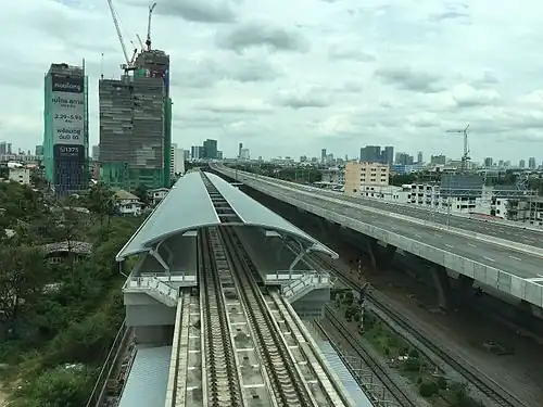 Bang Son station (Thai: สถานีบางซ่อน) is a railway station located in Bang Sue subdistrict, Bang Sue district, Bangkok. It is located 12.907 km (8.0 mi) from Bangkok Railway Station. Passengers can transfer to the Bang Son MRT station. Bang Son station serves two systems operated by the State Railway of Thailand, the Southern Line at the at-grade railway halt and the Bang Son–Taling Chan SRT Light Red Line at the elevated station.