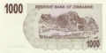 12 $1000 154 × 78 mm Navy blue Domboremari with trees, holographic stripe, Bauhinia, giraffes Three African elephants, giraffes (mirrored) Zimbabwe Bird (¾ profile, long neck) and "1000" 2003 1 October 2003 21 August 2006