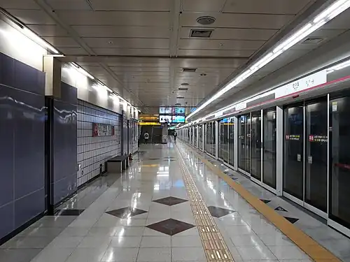 Banyawol Station (Korean: 반야월역; Hanja: 半夜月驛; RR: Banyawol-yeok) is a station of the Daegu Subway Line 1 in Seoho-dong and Dongho-dong, Dong District, Daegu, South Korea. It is connected with the last stop of the downtown bus. Its use frequently is reportedly low.[1]