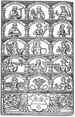 Illustration from de Chasseneuz's Catalogus gloriae mundi, showing the 14 arts.