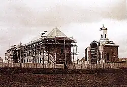 At the beginning of 1932, both wings of the church were completed, one of them established as a school for boys. At the end of 1933, the walls of the rotunda were erected, in 1935 the reinforced concrete dome was set. At the end of 1938, the church was roughly finished. The outbreak of World War II required a swift completion of the dome covered with a roof, with an internal staircase connecting the Assembly House with the church.