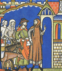 Illustration from the Morgan Bible of the Levite and his concubine.