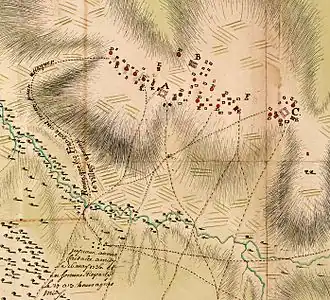 | Reportedly 100 Chickasaw warriors, roughly two dozen Englishmen, all within fortifications[2] | 544 European regulars and militia excluding officers, 45 Africans, 600 Choctaw warriors | ||||||