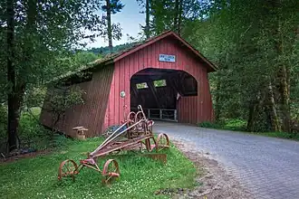 ![]() Covered bridge over Bear Creek, built from former Drift Creek Bridge timbers | |