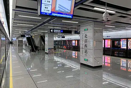 Beijiao West railway station (Chinese: 北滘西站; pinyin: Běijiàoxī Zhàn; Jyutping: Bak1gaau3 Sai1 Zaam6) is a station on Line 3 of Foshan Metro, located in Foshan's Shunde District.[1] It opened on 28 December 2022.[2][3][4]