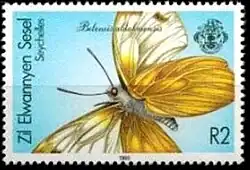 | Belenois aldabrensis on a 1988 stamp of the Seychelles | |