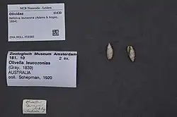 Belloliva leucozona is a species of sea snail, a marine gastropod mollusc in the family Bellolividae, the olives.[2]
