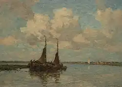 His chosen genres ranged from genre landscape painting with scenes of summer landscape, polders and the village face to the city face. In still life, he had primarily adopted the flower as an object.[14] He also chooses the classic theme of the windmill of Jan Hendrik Weissenbruch (1824-1903) and Paul Gabriel (1828-1903)—both are in the tradition of Jacob van Ruisdael (1630-1681). Very well known are the landscape paintings from the surrounding of Kortenhoef. He is primarily concerned with inland fishing themes, too.[15]