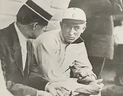 Cleveland Bronchos warming up in Chicago (Armour in suit at right).