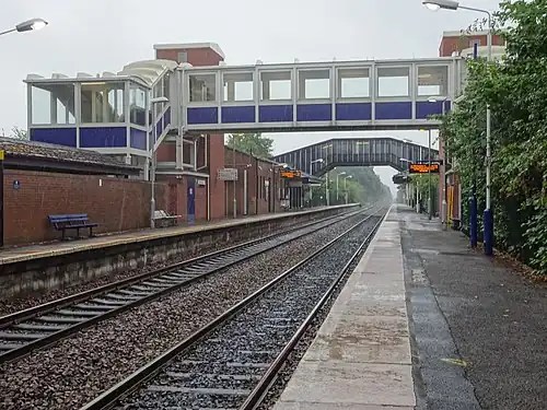 Birchwood railway station is a railway station serving the town of Birchwood, Cheshire, England. The station is 24+1⁄4 miles (39.0 km) east of Liverpool Lime Street and 13+1⁄4 miles (21.3 km) west of Manchester Piccadilly on the Liverpool-Manchester line.