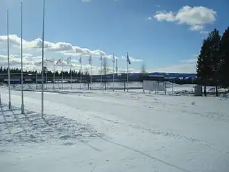 The FIS Cross-Country World Cup has been hosted three times, in 1993, 2000 and 2002, all in February or March.[14] The FIS Nordic Combined World Cup has been hosted seven times at the stadium, in 1998, 2000, 2003, 2005, 2006, 2009 and 2010. All tournaments have been held in December, and have seen the ski jumping competition hosted at Lysgårdsbakken, the Olympic ski jumping hill in Lillehammer.[15] Birkebeineren hosted Biathlon World Cup events from 1993 to 1997.[16] The stadium has also since 1992 been used as the goal area for Birkebeinerrennet, an annual ski marathon with thousands of participants.[17] It has also hosted the Norwegian Nordic Ski Championships in 1993.[18] Lillehammer hosted the 2016 Winter Youth Olympics;[19] the cross-country, Nordic combined and biathlon events took place at Birkebeineren.[20]