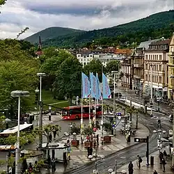 The Bismarckplatz (pronunciation) in Heidelberg is a square named for Otto von Bismarck, located at the western end of the Hauptstrasse, which forms the boundary between the old city and the suburb of Bergheim. It is one of the main squares of Heidelberg and one of the central nodes of the public transport system, along with Willy-Brandt-Platz in front of the train station.