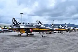 The Republic of Korea Air Force Black Eagles aerobatic team has operated in various occasions at national ceremonies and at international air shows.