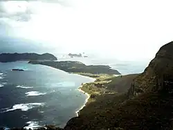View over Lord Howe from Mount Gower, looking north, with Blackburn Island the islet in the lagoon on the left