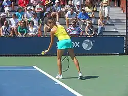 Her next tournament was the French Open, where she defeated María Irigoyen in the first round of the qualifying stage, but then fell to Anastasia Pivovarova in the second. She then suffered losses in the semifinal of the ITF event in Maribor and the Eastbourne International qualifications, but managed to enter into the main draw at Wimbledon.[18] Jovanovski defeated Casey Dellacqua in the first round, but lost to eighth seed Victoria Azarenka in the second. Her result at Wimbledon helped her ranking rise to world No. 93. Jovanovski then played at the Slovenia Open but lost to compatriot and world No. 2, Jelena Janković, in the opening round. At the İstanbul Cup, she won three matches in straight sets to qualify for the main draw, but lost to Elena Vesnina in the first round. In August, Jovanovski qualified for the main draw of the first Premier 5 of the US Open Series, the Cincinnati Open.[19] She upset the 14th seed Aravane Rezaï in the first round,[20] but lost to Akgul Amanmuradova in the following round in straight sets. Jovanovski then attempted to qualify for the Rogers Cup and the Connecticut Open, but fell to Sorana Cîrstea and Elena Vesnina, respectively. Jovanovski played her second major event at the US Open, but was defeated by Anastasia Rodionova in the first round. She also competed in women's doubles partnering with Janković, but they were defeated by Kimiko Date-Krumm and Ayumi Morita.