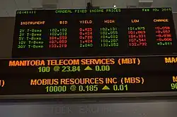 Nearly all of the average daily trading in the U.S. bond market takes place between broker-dealers and large institutions in a decentralized over-the-counter (OTC) market.[3] However, a small number of bonds, primarily corporate ones, are listed on exchanges. Bond trading prices and volumes are reported on the Financial Industry Regulatory Authority's (FINRA) Trade Reporting And Compliance Engine, or TRACE.