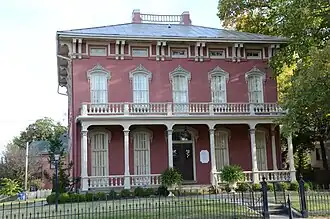 The Bonneville House is a historic house at 318 North 7th Street in Fort Smith, Arkansas. It is a two-story brick structure, with a metal hip roof and a brick foundation. Built in 1880, its styling is predominantly Second Empire, with elaborate window hoods, heavy paired brackets in the eaves, and a full-width porch with turned balusters and posts with finely detailed capitals. In addition to its locally distinctive architecture, the house is historically significant as the home of explorer Benjamin Bonneville.[2]