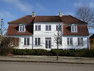 Following the completion of Fredensborg Palace in 1722, Fredensborg developed into a popular summer destination for civil servants and artists. The house now known as Bournonville House was built for royal county administrator (amtsforvalter) Jacob Lowson in 1761.[1] It was later sold to a royal messenger named Berner and it was also for a while operated as a guesthouse under the name Sommerlyst. The Royal Danish Ballet and other performing artists would often visit the town in the summer time to entertain the royal family and their guests. The house at Slotsgade 9 received its current name when it was acquired by choreographer August Bournonville. His father Antoine Bournonville had spent his last few years (1841–43) in a residence at Fredensborg Palace and is buried in the local Asminderød Cemetery. Bournonville used the house as his summer residence until 1879. He was one of the driving forces behind the foundation of the town's first daycare Dronning Louises Asyl for Smaa Børn and made frequent contributions to the poorhouse.[2]
