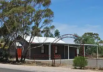 The area was originally the territory of the Ngadjuri people.[3] The name Bower honours David Bower, a South Australian Member of Parliament (1865 – 1887) who donated land in the state for institutional purposes.[4] By 1916, Bower had become a dispatch centre for mallee timber and roots. These were loaded at the railway station on the Morgan railway line and sent to Adelaide.[5] Bower Public School operated in the town between 1917 and 1960, replacing an earlier Lutheran school forcibly closed during World War I.[4][6][7]