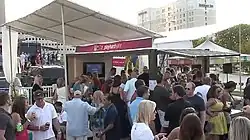 The "pop up parties" have been used by Budweiser events at NASCAR races, and by vitaminwater at NFL tailgate parties. The units can be combined into several stories, or expanded with panels between them to allow for dance floors. The solar power provides electricity for the refrigerators, bars, music decks, even television sets.[1] Setting up a unit of 46 m2 which is complete with a variety of purposes takes twenty minutes.,.[2][3]