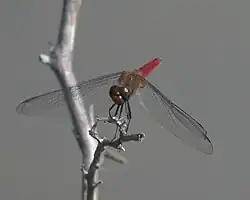 Brachymesia furcata, commonly known as the red-tailed pennant, is part of the dragonfly order Odonata. It is a species of skimmer belonging to Libellulidae, one of the largest dragonfly families in the world. Along with Brachymesia gravida and B. herbida, two closely related species within the same genus, B. furcata is often found in semi-aquatic habitats distributed throughout the Caribbean, the Americas, Argentina, West India, Mexico, and Puerto Rico.[1][2][3][4][5][6] Current populations of B. furcata are stable. The IUCN conservation status of B. furcata designates the species as "least concern" as last reviewed in 2017.[7][8][9]