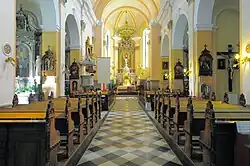 Brezje is best known for Mary Help of Christians Basilica (Slovene: Bazilika Marije Pomagaj), the largest pilgrimage church in Slovenia and national shrine of the Roman Catholic Archdiocese of Ljubljana. The present-day Neo-Renaissance church building modelled on the Basilica of Saint Mary of the Angels in Assisi was consecrated in 1900; it replaced Mary Help of Christians Chapel in the 15th century St Vitus parish church which had become a major pilgrimage site in the 19th century. Mary Help of Christians Basilica is also the monastery church of a Franciscan convent established at the site in 1898. The church plaza was laid out according to plans by Jože Plečnik.
