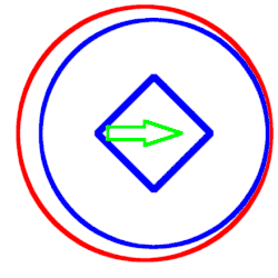 Precession between a rotating shaft in a hole, caused by excess clearance due to wear. If a bearing with four balls were located at the blue circumference of the shaft, each ball positioned at the corners of the square, contact of those balls with the red, outer bearing-race only occurs in discrete areas along that race, causing vibration, noise, and accelerated wear, and leaving indentations that resemble brinelling, but can be differentiated from true brinelling.