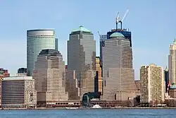 Brookfield Place, then the World Financial Center, in 2011, with construction on the World Trade Center taking place in the background