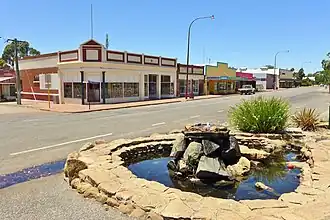 Brookton is located on Great Southern Highway, 138 kilometres (86 mi) east of Perth via Brookton Highway and is a key agricultural centre for a rich mixed farming district. In the 2016 census it reported a population of 975.[8] It contains a TAFE centre, and in addition, a district high school (opened 1960, replacing a primary school), Bendigo Bank, shopping facilities, accommodation (hotel, motel, caravan park), council offices and a telecentre are located within the town. Bi-annually, it hosts the Old Time Motor Show.