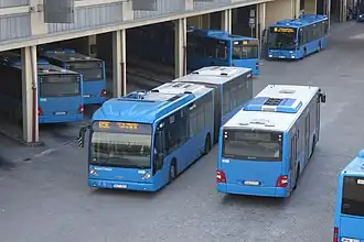 Ikarus 280: Hungarian made articulated version of the Ikarus 260, built from 1973 to 2003. Some of the fleet were entirely rebuilt in 1997 and painted in red-blue livery for use on 7-173 express routes, but from 2008 onward, they were repainted in the standard blue. The last remaining vehicles were taken out service in November 2022.