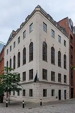 The Company's headquarters is at Butchers' Hall. The Butchers' has had several halls throughout its history. The first was located in Monkwell Street and dated from the second half of the 15th century. The next Hall near St Bartholomew's Hospital was destroyed in the Great Fire of London of 1666, together with forty three other Livery Company Halls.
