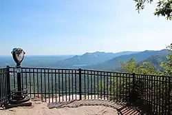 The park is noted for its panoramic view of the mountain country and is a destination for hiking, trailside camping, and picnicking. A popular hiking trail in the park leads to the 420-foot-high (128 m) Raven Cliff Falls, crossed by a suspension bridge. There are five other waterfalls in the park.[9]