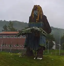 His first large sculpture was Jätten Vist (the Vist the Giant), completed in 1969 and standing over 11 metres (36 ft) high next to the European route E4, at Huskvarna. According to the legend, the giant was on his way home from a party in Västergötland. He threw some grass and soil into Lake Vättern for his wife to step on, thus creating the island Visingsö.[2][3]