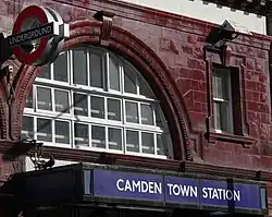 Camden Town is a London Underground station in Camden Town, London.[7] It is on the Northern line as well as a major junction for the line, as it is where the Edgware and High Barnet branches merge from the north, and is also where they split to the south into the Bank and Charing Cross branches for the journey through Central London. It is particularly busy with visitors to the Camden markets at weekends, and, until 2019, was exit-only on Sundays to prevent overcrowding.