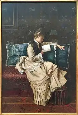 After an initial apprenticeship with his father, Cabaillot-Lassalle took lessons from Pierre-Édouard Frère (1819-1886) at the Écouen painters' colony. He specialized in interior genre scenes, depicting young bourgeois women and their children in their domestic activities.[1]