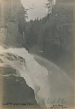 ![]() Campbell River downstream of Elk Falls in the Elk Canyon as seen from suspension bridge in Elk Falls Provincial Park | |