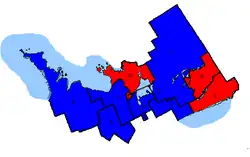 The Progressive Conservatives swept the region, winning everywhere with significant majorities. The Liberals arrived second in every riding in the region, with the NDP third.