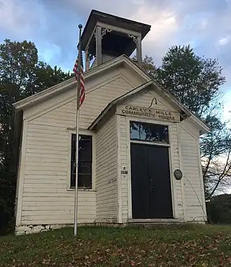 Carley's Mills Schoolhouse is a historic one-room school building located at Hastings in Oswego County, New York. It is a modestly scaled, one story frame building built about 1870. On the rooftop is a hipped roof belfry, which still retains what appears to be the original bell. Also on the property is a cast iron water pump. It ceased being used as a school in 1953.[2]