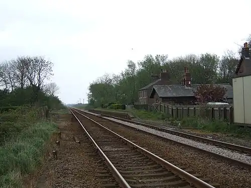 The western end of the station was to be the junction of the Bridlington and North Frodingham Light Railway.[3] The act of parliament for this line was granted in 1898 under the Light Railways Act 1896.[4] The line was to have been standard gauge and worked by steam locomotives throughout.[3] The line was never built.