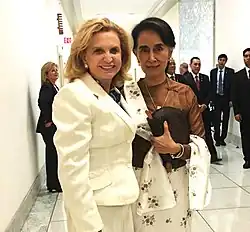 Maloney with State Counsellor of Myanmar and Nobel Peace Prize laureate Aung San Suu Kyi in September 2016