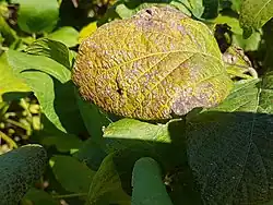 Cercospora kikuchii is a fungal plant pathogen that affects soybeans.[1] It results in both the Cercospora leaf blight and purple seed stain diseases on soybean and is found almost worldwide. C. kikuchii produces the toxin cercosporin, as do a number of other Cercospora species.