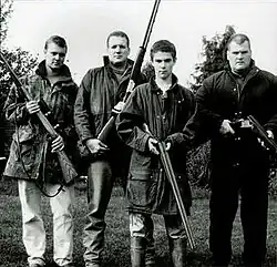 The cover image, taken by Thighpaulsandra, is titled "The Hunting Party" and features two pairs of brothers: Michael and Mark Edwards, and Lee and Lance Jonathan.