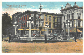 "Fountain, Memorial Square, Chambersburg, Pa." 1921 post card.